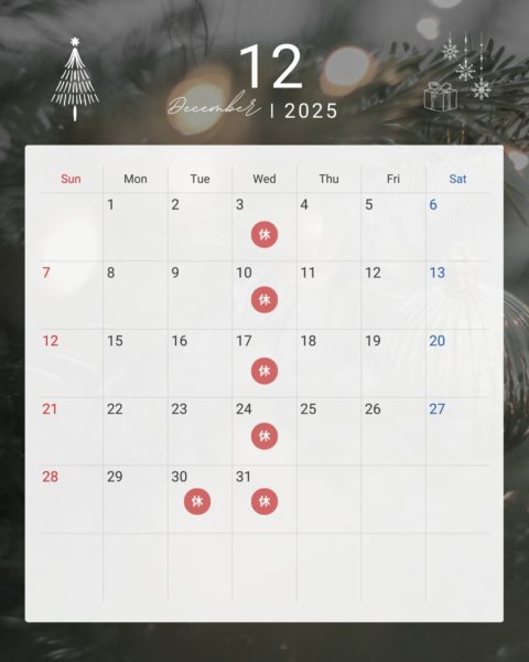 2025年12月30日(火)〜2026年1月4日(日)までお正月休みとさせていただきます🎍
