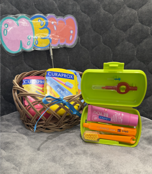 CURAPROXらしい可愛い配色の歯ブラシに、歯磨き粉、歯間ブラシ×②がセットになっていて、特にマウスピース矯正中の方にオススメです🙆♀️💕
