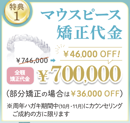 矯正治療費を通常746,000円のところなんと46,000円OFFの700,000円でご案内いたします🦷✨